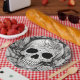 Estranho, mas faça-o artístico! Estas pratos de papel bonitinhas apresentam um intrincado design de crânio preto e branco e são perfeitos para festas de Halloween.