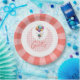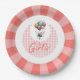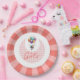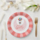 Uma placa de papel rosa e branco adorável, personalizada com o nome de uma menina, perfeita para uma ocasião memorável de chá de fraldas.