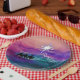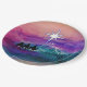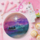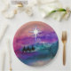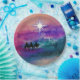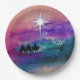 Linda cena de aquarela com a silhueta dos Três Reis viajando para o novo nascer Jesus. Cartão de Natal religioso proclamando o nascimento do Cristo.