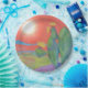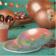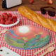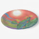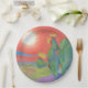 Esta placa de papel caracteriza uma pintura de uma paisagem do sudoeste com cores do cacto e do por do sol.