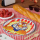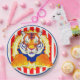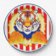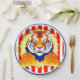 Este prato de papel é perfeito para um piquenique de 4 de julho! Um tigre ousado pula através de um anel de fogo! Fundo com as listras grandes de vermelho e branco *Visite o Divertido4UDescarnece coleções para os produtos do Circus Tiger!