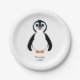 Imagem de um pinguim com mordentes cor-de-rosa.