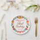 Uma grinalda floral bonito com as flores da laranja, do ouro, do azul brilhante, do rosa, do vermelho, do amarelo, e das bordadura do marrom a borda exterior das placas de papel do primeiro aniversário que são perfeitas para a primeira celebração do aniversário! O texto de Brown afiado com laranja lê o primeiro aniversário, e você pode personalizar adicionando o nome da sua criança e a data de nascimento!