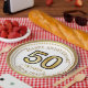 Aniversário de casamento de ouro elegante ou pratos de papel de aniversário, mude o tipo curvo no topo e no fim para a sua ocasião ou evento, fácil personalização quando você faz o pedido.