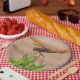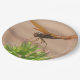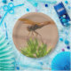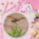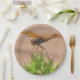 Esta placa de papel apresenta uma libélula que repousa em botões de flores. Há guardanapos de papel para combinar.