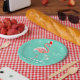 O meio século inspira um design com um flamingo rosa festivo vestindo um chapéu vermelho de Santa, estrelas e palmeiras decoradas com bolhas colocadas sobre um fundo aqua. Um design personalizável para você personalizar com seu próprio texto, imagens e ideias. Uma imagem de arte digital original criada por Quirky Chic.