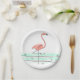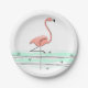 Médio do século inspirado no design com um toque retrorreflector com um flamingo rosa em pé na água aqua contra fundo branco. Um design personalizável para você personalizar com seu próprio texto, imagens e ideias. Uma imagem de arte digital original criada por Jess Perry no QuirkyChic Retro.