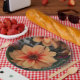 Esta placa de papel apresenta uma flor de cor pêssego. Escolha o tamanho da placa. Excelente de piqueniques, casamentos, chás e festas em geral.