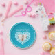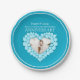 Placas de papel descartáveis do 4º aniversário de casamento do topaz azul. Excelente de adicionar um toque personalizado à festa especial do 4º aniversário de casamento, festas de janto ou reuniões informais. Personalize com seus nomes de casais e foto no quadro de foto do efeito cardíaco topaz azul. O topaz azul é a pedra angular associada a 4 anos de casamento. Arte de efeito cardíaco de gemstone azul topaz e design por Sarah Trett para www.mylittleeden.com no zazzle.