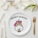 Esta placa de papel apresenta um unicórnio grumpy com uma gravata arco e um forelock rosa. Perfeito para crianças, festas de aniversário, festas infantis e festas de jardim ensolaradas.