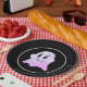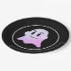 Placa de papel de festa do Halloween mostrada com um impressão fantasma. Personalize este item ou comprar como está.