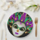 Esta placa de papel é mostrada com um impressão festivo de máscara de carnaval Mardi Gras. Preto colorido Também oferecemos um guardanapo de papel correspondente. Personalize este item ou comprar como está.