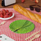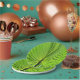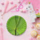 Folha de palma. A luz do sol toca através e ao redor da palma da frente. Verduras brilhantes, com um tom amarelo nas bordas. ***Parte do conjunto coordenado - bkm3r.