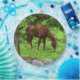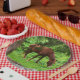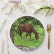 Esta placa de papel tem um pasto de cavalo em um pasto de Connecticut. Há guardanapos para combinar.