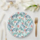 Placa de papel para chá de fraldas, decorada com imagens adoráveis de plantas aquáticas com esmeraldas e folhas azuis, galhos e flores rosadas macios.