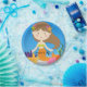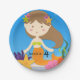 As placas de papel personalizadas do aniversário triguenho da sereia caracterizam uma sereia bonito com o cabelo marrom decorado com estrela do mar colorida, a cauda alaranjada da sereia, a estrela do mar, a erva daninha do mar, o oceano azul, e uma área que você pode personalizar com o nome e idade da menina do aniversário!