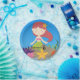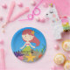 As placas de papel personalizadas do aniversário da sereia do Redhead caracterizam uma sereia bonito com o cabelo vermelho decorado com uma estrela do mar amarela, uma cauda verde da sereia, uma estrela do mar, uma erva daninha do mar, um oceano azul, e uma área que você pode personalizar com o nome e idade da menina do aniversário!