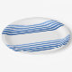 Linhas azuis em cinco tons variáveis Escuro a claro, de baixo para cima. Dois conjuntos de faixas são colocados diagonalmente em cantos opostos (placa quadrada).