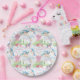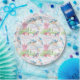 O design apresenta um padrão perfeito, sonhador, ao estilo aquarela, com unicórnios, castelos, arco-íris e nuvens, criando uma atmosfera de fantasia. O fundo apresenta castelos magicos cor-de-rosa com tartarugas, colocados contra colinas verdes rolantes com árvores. As nuvens suaves e peludas e os detalhes florais delicados, incluindo as pequenas flores e o trevo, são espalhados pelo design. Um arco-íris pastel sobrevoa parte da cena, somando a estética caprichosa, fantasia. A paleta de cores consiste em pastas macios, incluindo cor-de-rosa, azul, verde e amarelo, dando ao design uma sensação de feto, mágica.