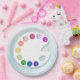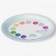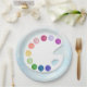 Uma placa de papel que parece ter uma paleta de tinta pronta para ser usada! Efeito azul de aquarela sobre fundo e uma paleta de tinta branca com dez lindas cores de tinta. Sirva seus petiscos de festa de aniversário, refeição ou bolo de aniversário nesses pratos de arte criativos e divertidos!
