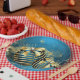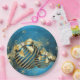 Prato De Papel Placa Dourada de Papel de Natal Azul