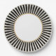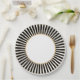 Esta placa de papel apresenta uma faixa radial em preto e branco ao redor da borda com um centro branco e uma borda dourada. Perfeito para Véspera de ano novo ou qualquer outro encontro formal.