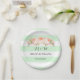 As placas conhecidas customizáveis do casamento no teste padrão verde e branco da hortelã das listras com vintage da aguarela do rosa do pêssego florescem.
