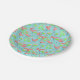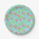 Os flamingos rosas e vivos batem suas asas e enrolam suas penas contra um fundo azul-d'água com verduras e lírios d'água. Um médio de século inspirado num design com um toque retrorreflector que pode ser personalizado com o seu próprio texto, imagens e ideias. Uma imagem de arte digital original criada por Quirky Chic.