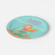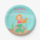 Combine seu partido do tema da fantasia da sereia com estas placas de papel do partido bonito da sereia. Tem uma sereia com a parte superior cor-de-rosa que senta-se em uma rocha no oceano. Excelente para as meninas do aniversário que estão comemorando sob o mar e os temas subaquáticos! Adicione sua mensagem no espaço fornecido.