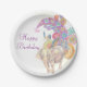 imagem bonito da aguarela de um elefante e de um pássaro azul que desejam um feliz aniversario no texto.