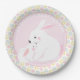 NewParkLane - Placas de Papel, com um coelho-mãe e bebê, em um quadro circular cor-de-rosa pincelado, contra um fundo floral cor-de-rosa, verde-sábio e amarelo-mostarda. Design (para um chá de fraldas) bonito para o aniversário de uma menina. Fácil de personalizar no Zazzle com seu nome, data ou outro texto para um design personalizado. Todo estilo de texto, cores, tamanhos podem ser modificados para ajustado das suas necessidades. Veja esta coleção de itens correspondentes, como guardanapos e copos de papel! Você tem desejos pessoais específicos de design? Sinta-se livre para me contactar!
