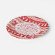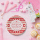 Festivo costume Ugly Sweater, pratos de papel do Feriado de Natal com tela folk-art, padrão nórdico em vermelho e branco. Layout de tipografia de safra com espirais de rico, flocos de neve, árvore, veado e galhadas. Acessórios de festas perfeitos para eventos de tema de blusa de Natal feios ou casuais em reuniões domiciliares. Personalize-o com seu nome ou saudação personalizada. Vestir sua mesa de férias com esses suprimentos de festas divertidas e criar um cenário de mesa feliz e hilário para você e seus convidados aproveitarem. Maneira brilhante e alegre, clássica, moderna e bonita de definir o espírito da temporada para todos os seus amigos e família com charme rústico, mas tradicional.