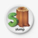 Este design é um golpe. O toco da árvore tem a letra S para o toco ao lado dele. Este design de tosta parece excelente nesta placa de papel