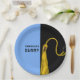 Chapas criativas de festa de formatura com boné de formatura preto e dourado sobre fundo azul-claro. Para personalizar editar texto para adicionar o nome do formando.