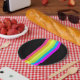 Inspirada pela safra, pelos estilos retrorreflectores do anos 80 e dos anos 90... Um fundo preto com faixas do arco-íris cor-de-rosa-neon, laranja, amarela, verde, azul e roxa... Excelente pequena ideia de festa... para aniversários, celebrações, feriados e muito mais... adiciona um toque de charme de vintagem à sua mesa...