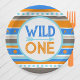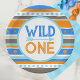 Placas De Papel Selvagem E primeiro aniversario, Padrão Azul - Azul, Laranja, Castanho, Animais Florestais