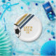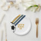 Placas de Aniversário com faixas amarelas, verdes e marinhos azuis.