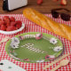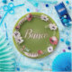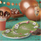 Bens de papel de Bunco para adicionar um elemento extra do design a seu partido seguinte de Bunco. Grinalda bonita das características compreendida de penas e de flores boémias do estilo. Fundo verde do inclinação com o texto "Bunco". Aperfeiçoe servindo a comida em seu evento seguinte de Bunco.