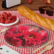 Lindo pratos de papel de girassol vermelho...