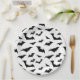 A placa de papel de festa do Dia das Bruxas é mostrada em cor branca com um impressão de morcegos. Personalize este item ou comprar como está. Mostrado no tamanho de 9". Vendido em embalagens de oito.
