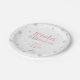 Adicione um toque pessoal ao seu dia especial com este Placas de Papel de primeiro aniversario da Holanda do inverno! Este design apresenta flocos de neve com brilho prateado e tipografia rosa fofinha. Mais designs correspondentes disponíveis no meu compro.