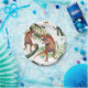 design de dinossauro excelente para festas de aniversário! T-Rex, pescoço longo, dinossauros voadores, impressões e vegetação. Fundo branco.