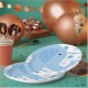Placas de papel do elefante azul, excelente para festas de aniversário, chás de fraldas, ou alguma ocasião se você ama elefantes! Caracteriza um elefante azul grande com as orelhas pontilhadas polca e estrelas azuis no fundo branco.