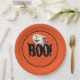 Placa de papel de festa mostrada em laranja e com a palavra "boo" e um fantasma fofo. Personalize este item ou comprar como está.