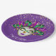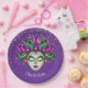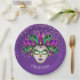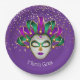 Chapas de papel mostradas com uma design impressão de Máscara Mardi Gras festiva. Cor Roxo Personalize este item ou comprar como está.