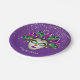 Chapas de papel mostradas com uma design impressão de Máscara Mardi Gras festiva. Cor Roxo Personalize este item ou comprar como está.