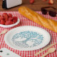 Conjunto de oito placas de papel de 9" com uma imagem de um aqua e de uma cinza "Árvore da Vida" no marfim. Também disponível em azul real. O símbolo da árvore da vida representa nosso desenvolvimento pessoal, singularidade e beleza individual. Assim como os ramos de uma árvore se fortalecem e crescem para o céu, nós também crescemos mais fortes, lutando por mais conhecimento, sabedoria e novas experiências à medida que nos movemos pela vida. Veja toda a coleção This & Aquela Plate na seção HOME.