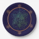 Por que lavar pratos de porcelana quando você pode ter pratos de papel resistentes para sua mesa ou recepção de feriados judeus? A ilustração da arte é um Magan David adoradamente embelezado trabalhou originalmente em caneta e tinta e depois foi digitalmente melhorada para mostrar este maravilhoso verde esmeralda ou malaquita. Estas placas de papel maravilhosamente dramáticas irão certamente vestir a sua mesa com uma aparência única.