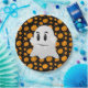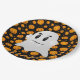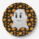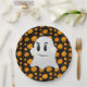 Placa de papel de festa de Halloween mostrada com uma abóboras e impressão fantasma. Personalize este item, escolha entre tamanho e forma ou comprar como está. Imagem do stock vecteezy.com