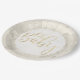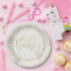 Oh, tipografia do bebê num mapa do mundo ouro e cobertura branca transparente com borda dourada.